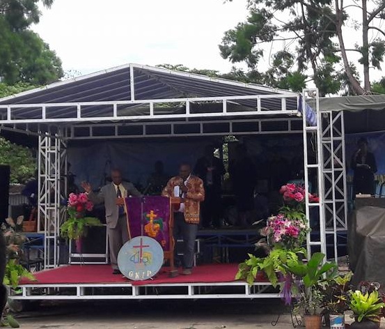 Warga jemaat Gereja Kemah Injil Indonesia GKII Koordinator Teluk Cendrawasih Nabire Papua, memperingati HUT ke 78 masuknya injil empat berganda di Enarotali Paniai dalam suatu ibadah bertempat di Gereja Kingmi Maranatha Karang Tumaritis Nabire, jumat 13 januari 2017.