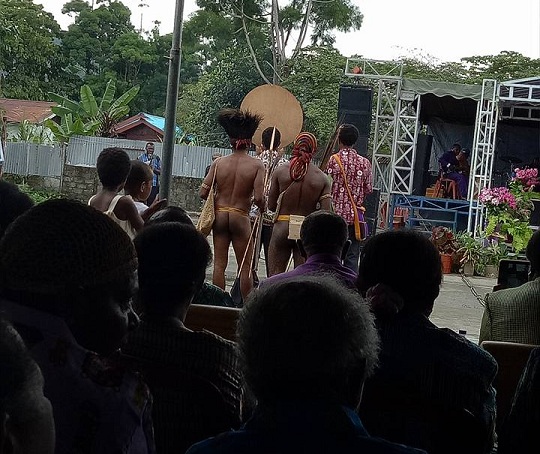 Ibadah syukuran ini juga dimeriahkan dengan fragmen yang menggambarkan masuknya injil empat berganda pertama kali di Paniai yang dibawa oleh Tuan AB. Simson, Walter Post dan Rusel Deibler pada tahun 1939.