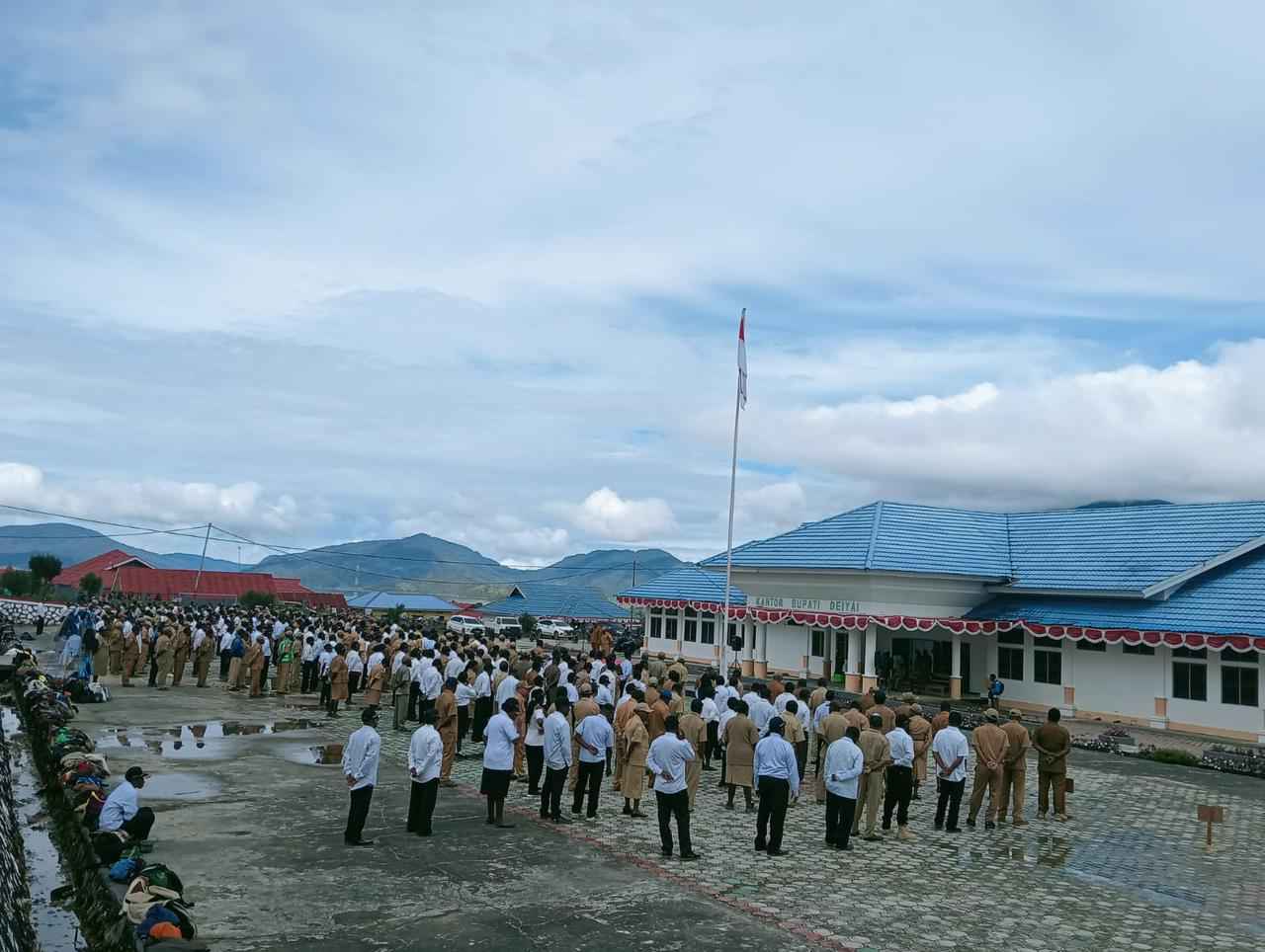Deiyai, 3 November 2025 – Pemerintah Kabupaten Deiyai terus berbenah. Bupati Deiyai, Melkianus Mote, ST, memimpin apel gabungan seluruh ASN dan pegawai di lingkungan Pemkab Deiyai pada Senin (3/11/2025). Apel ini menandai komitmen baru untuk memperkuat disiplin, koordinasi, serta semangat kerja aparatur dalam mendukung pembangunan daerah.