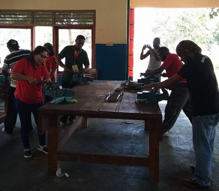 Untuk mahasiswa prodi Teknik Industri, mereka mengikuti pelatihan meubeler, mengenal mesin industri serta pembuatan baut dan mur.