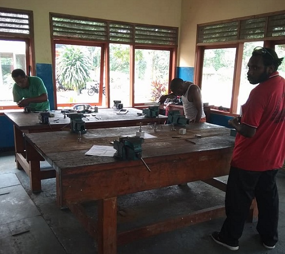 Untuk mahasiswa prodi Teknik Industri, mereka mengikuti pelatihan meubeler, mengenal mesin industri serta pembuatan baut dan mur.