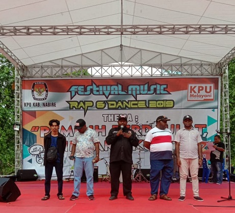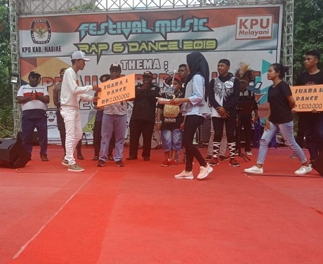 Nabire – Guna mendekatkan momentum Pemilu 2019 bagi para pemilih pemula secara khusus dan bagi warga kabupaten Nabire, Komisi Pemilihan Umum (KPU) Kabupaten Nabire menyelenggarakan Festival Rap dan Dance 2019, 17 Maret 2019, bertempat di Pantai Wisata Gedo Nabire.