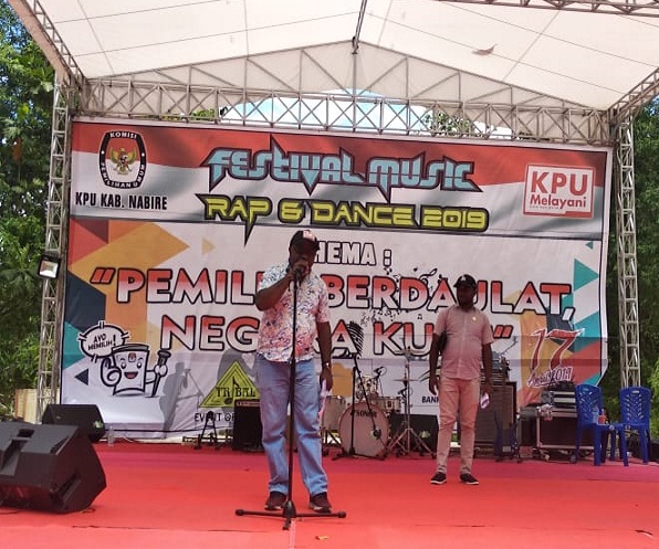 Nabire – Guna mendekatkan momentum Pemilu 2019 bagi para pemilih pemula secara khusus dan bagi warga kabupaten Nabire, Komisi Pemilihan Umum (KPU) Kabupaten Nabire menyelenggarakan Festival Rap dan Dance 2019, 17 Maret 2019, bertempat di Pantai Wisata Gedo Nabire.