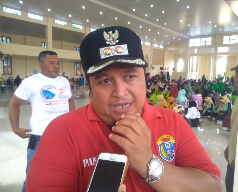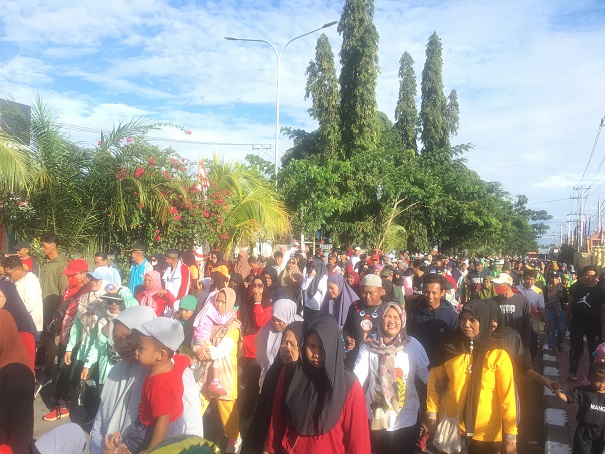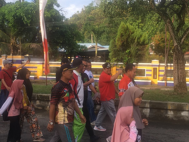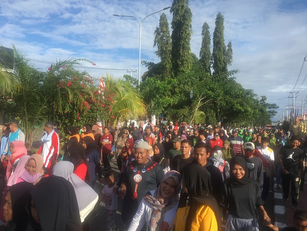 Usai sambutan, Wakil Bupati Nabire melepas para peserta jalan santai yang melalui rute Jalan Merdeka dan kembali lagi ke halaman Gedung Islamic Centre.