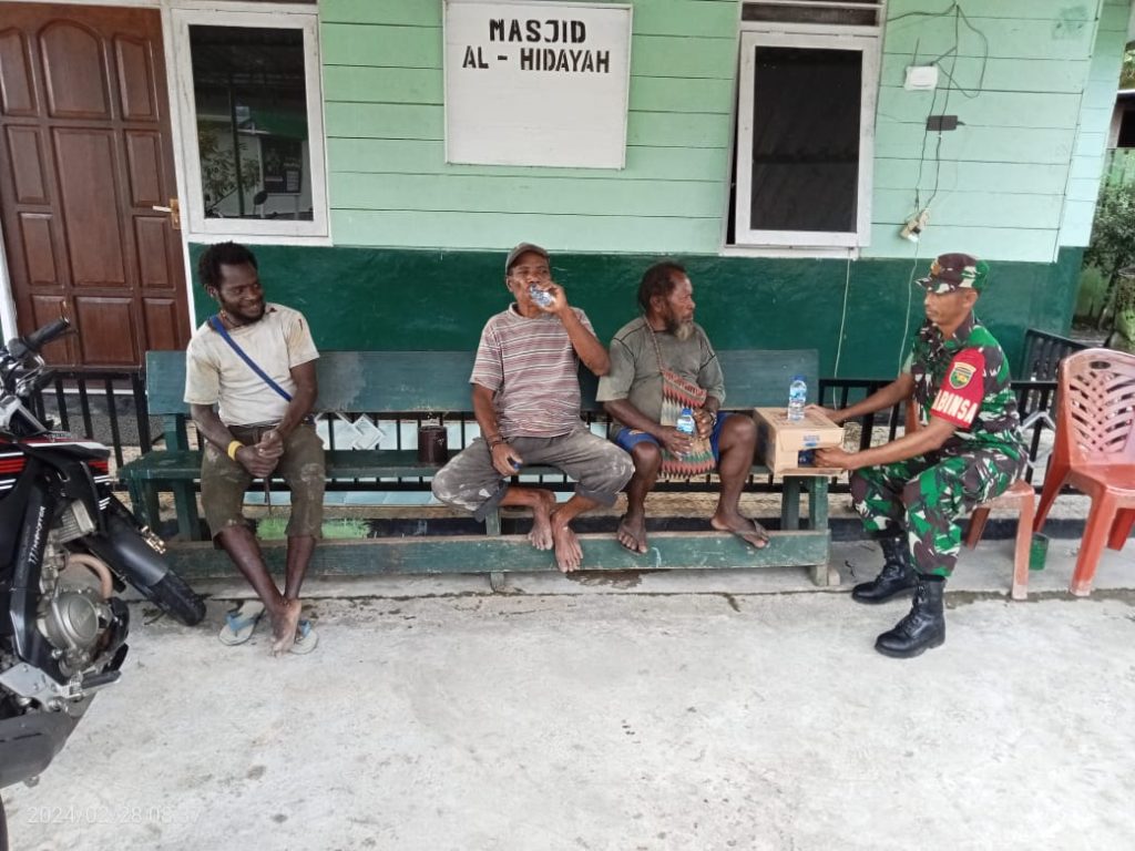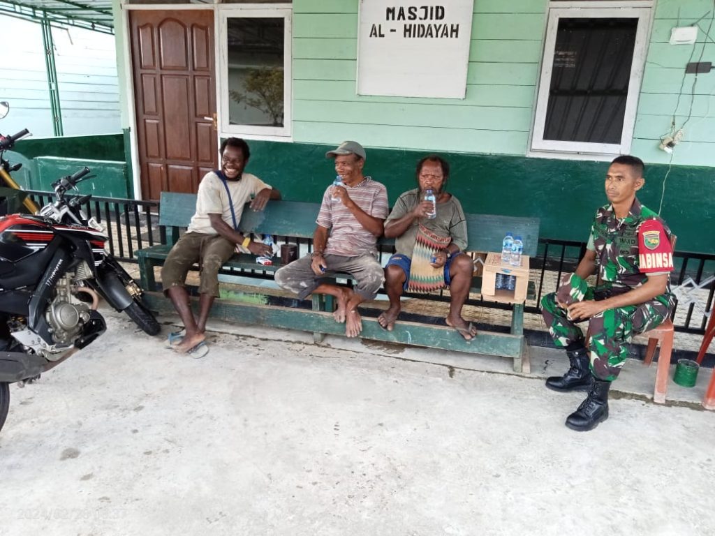 Nabire, Dalam rangka menjalin hubungan baik dengan masyarakat, Babinsa Koramil 1705-07/Siriwo, Serda Yoyon, melaksanakan Komunikasi Sosial (Komsos) dengan warga di Mesjid Al Hidayah, Jalan Trans Nabire-Ilaga, Kilometer 100, Distrik Siriwo, Nabire, Papua Tengah, Selasa (03/04/2024).