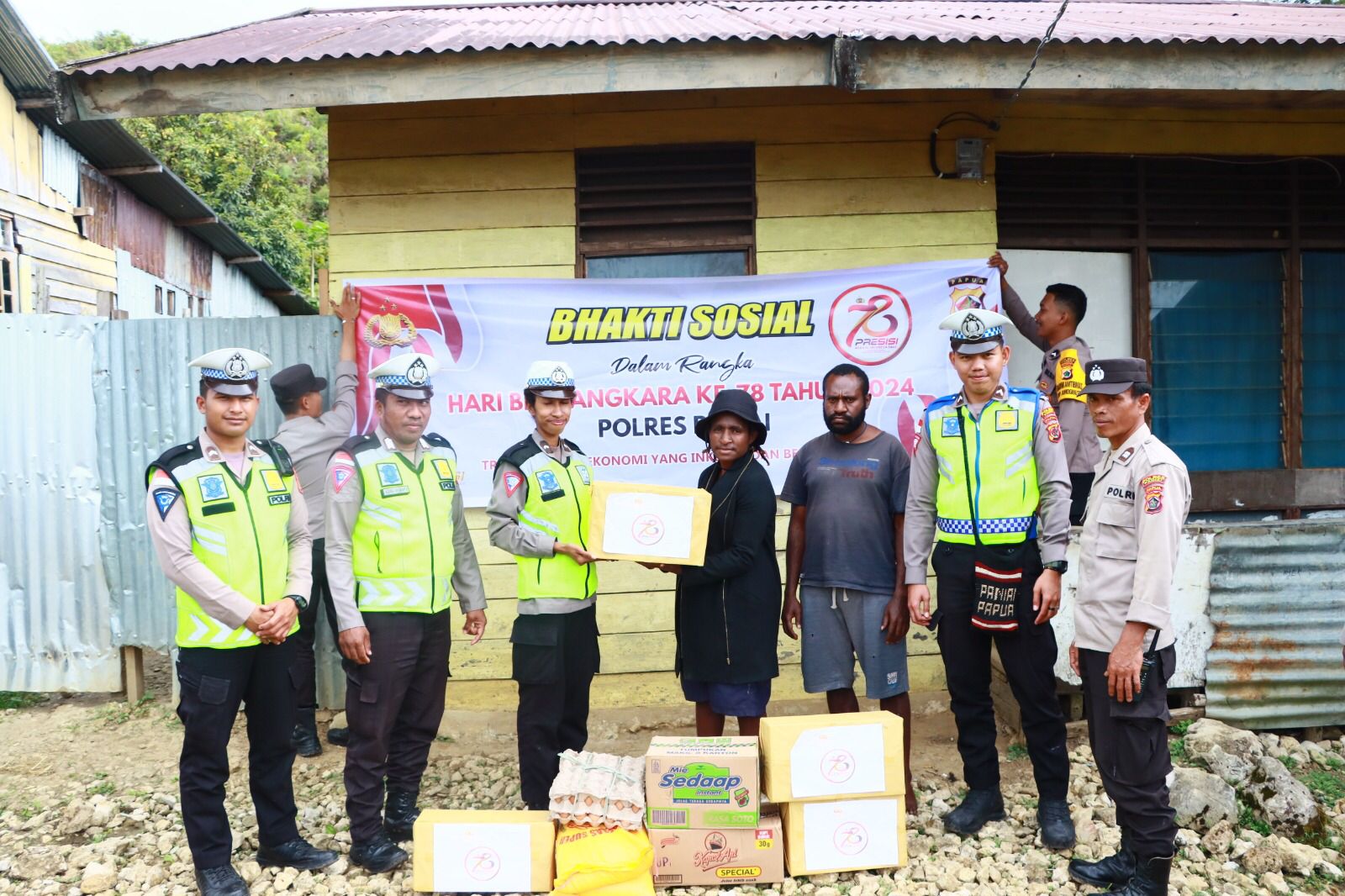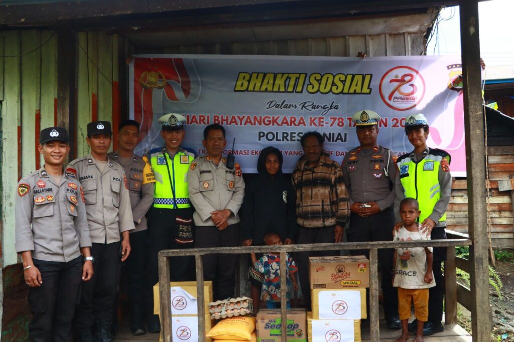 Paniai, 21 Juni 2024 – Dalam rangka memperingati HUT Bhayangkara ke-78 yang jatuh pada tanggal 1 Juli 2024, jajaran Polres Paniai menyalurkan bantuan sosial kepada purnawirawan Polri, Jumat (21/06/2024).