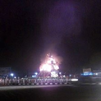 Pohon natal yang berada di depan bandara Nabire (Tugu Selamat Datang) dan baru diresmikan 15 desember 2016 lalu bertepatan dengan HUT ke 51 Bupati Nabire, Isaias Douw, terbakar, sabtu malam, 17 desember 2016 pukul 19.00 wit.
