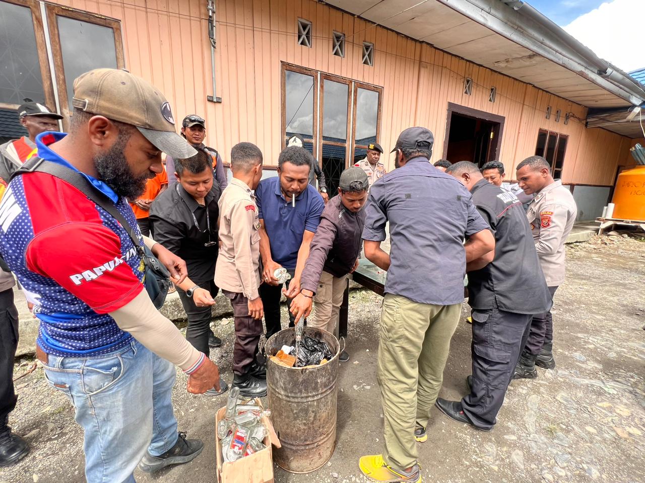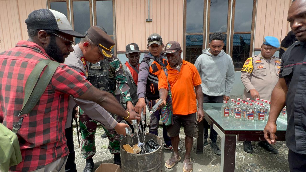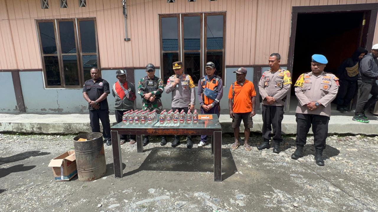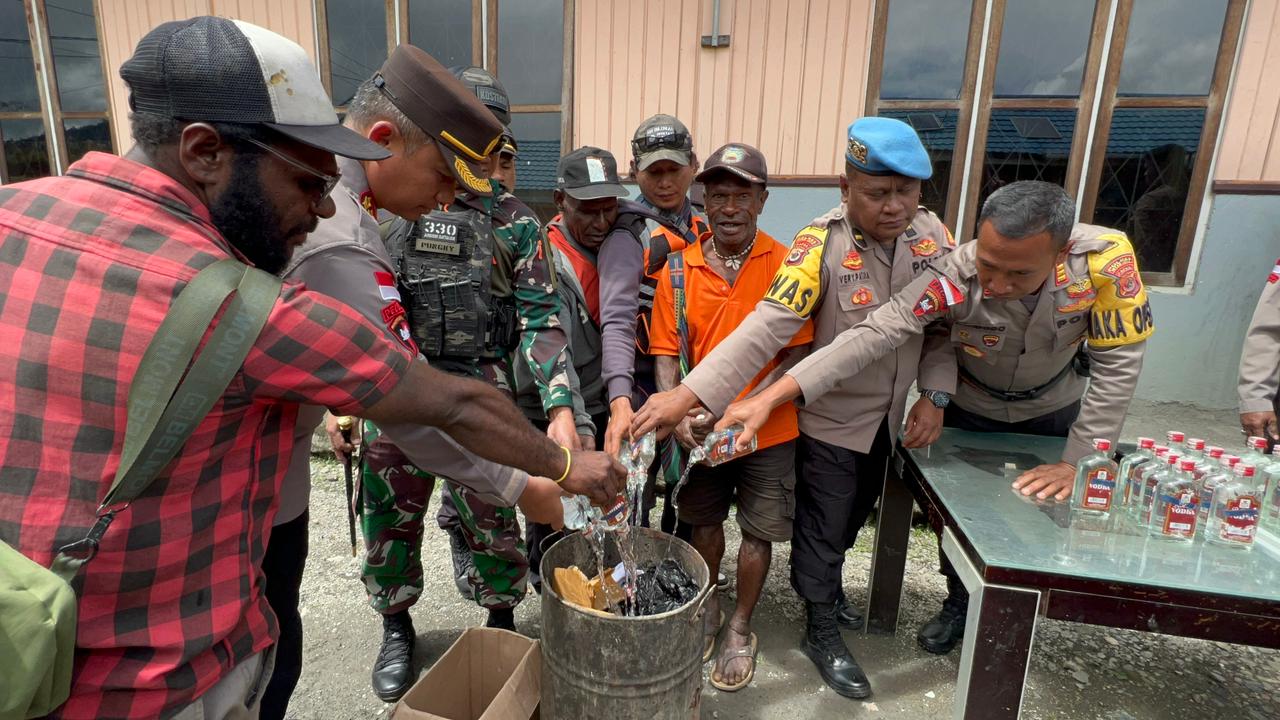Kapolres Intan Jaya, AKBP Afrizal Asri S.I.K mengatakan bahwa pihaknya hari ini melakukan pemusnahan Minuman Keras (MIRAS) yang telah didapati oleh Personel TNI Satgas YPR 330 / Tri Dharma yang melakukan penindakan terhadap masyarakat yang mencurigakan.