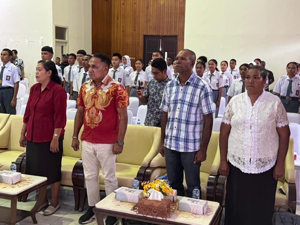 “Atas nama pribadi dan Pemprov Papua Tengah, saya mengucapkan selamat kepada adik-adik yang menjadi calon Paskibraka tingkat nasional perwakilan Provinsi Papua Tengah. Semoga adik-adik sukses mengikuti kegiatan pemusatan pendidikan dan pelatihan di Jakarta,” ujar Ausilius Yauw, membacakan sambutan Pj Gubernur Papua Tengah, Dr. Ribka Haluk, S.Sos., MM.