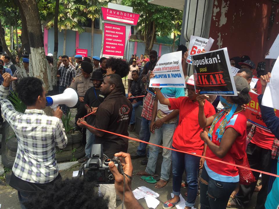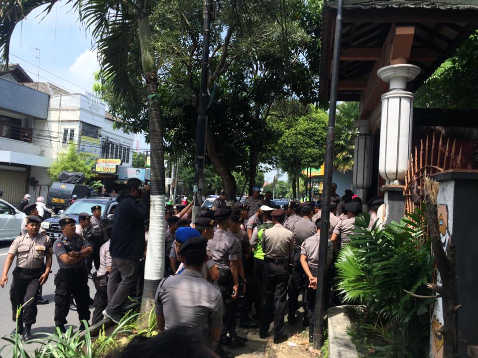 Puluhan polisi menghalangi mahasiswa asal Papua di Yogyakarta yang hendak menggelar demonstrasi jumat kemarin (27/01). Sekitar 70-an mahasiswa asal Papua dikurung di Asrama Kamasan, Jalan Kusumanegara, Yogyakarta.