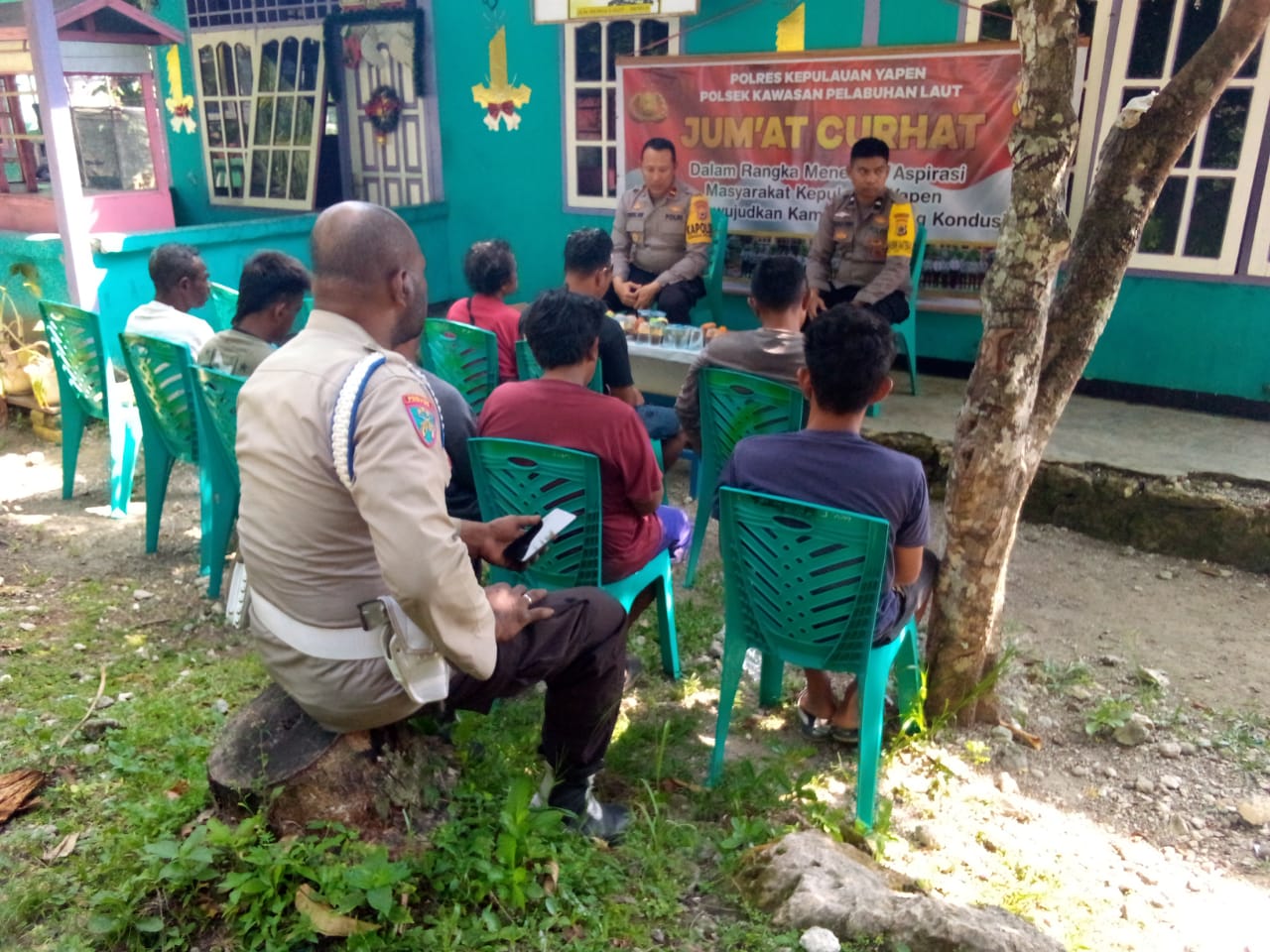 Kepulauan Yapen, Untuk mendengarkan berbagai keluhan masyarakat yang menjadi permasalahan di tengah-tengah aktifitas sehari-hari, Polsek KPL Serui terus mendatangi masyarakat melalui kegiatan Jumat Curhat yang dilaksanakan bersama Anak Buah Kapal (ABK) dan beberapa masyarakat di Kampung Serui Laut, Jumat (27/10/23).