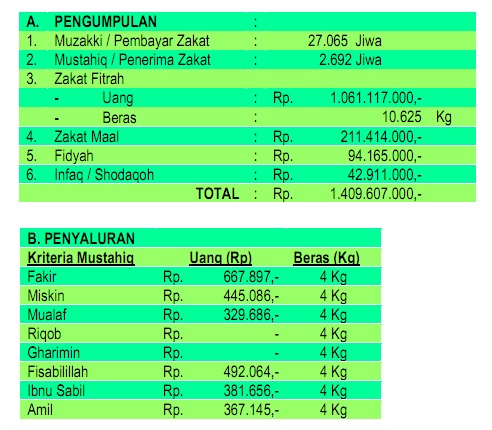 Berikut hasil pengumpulan dan penyaluran ZIS tahun 2020 :