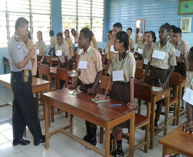 Satuan Pembinaan Masyarakat (Sat Binmas) Polsek Nabire Kota memberi pembekalan kepada para siswa/i SMP YPPK Santo Antonius Nabire, sabtu 27 Januari 2018.