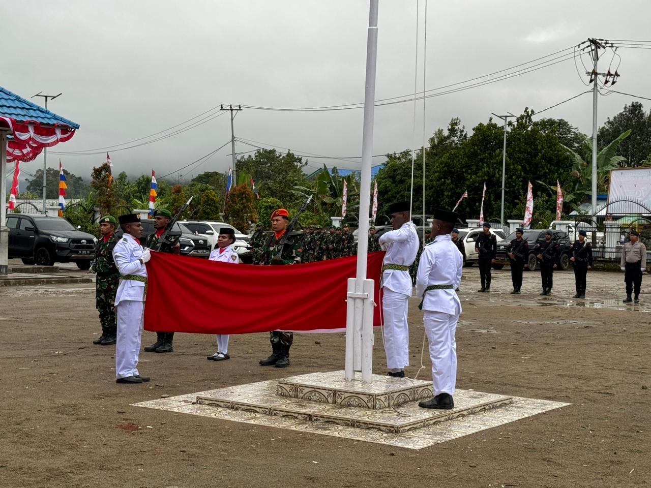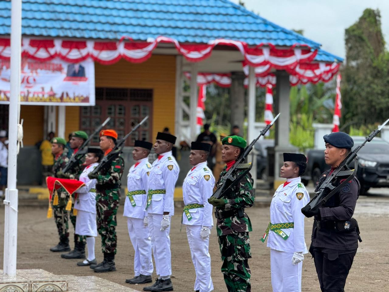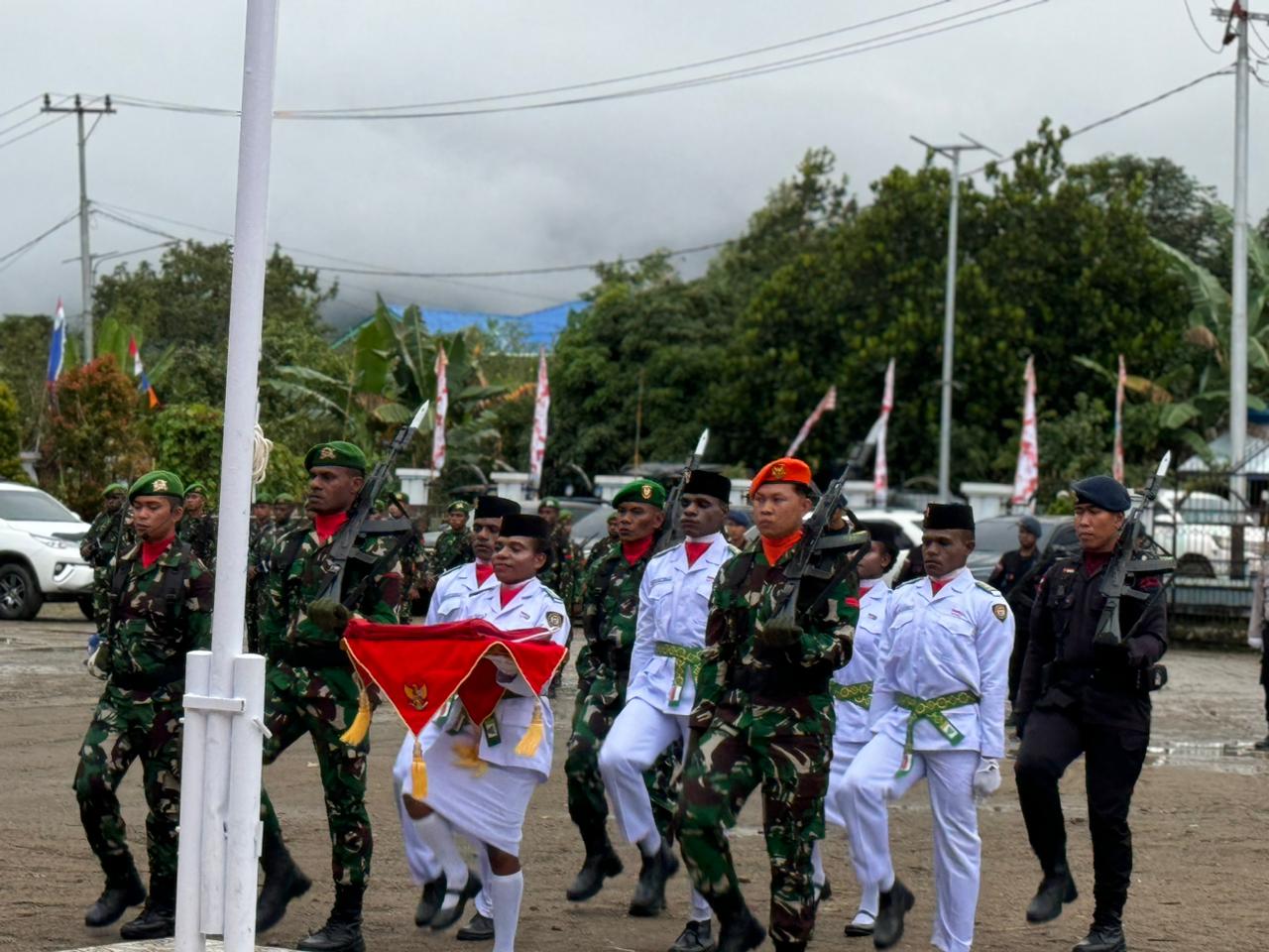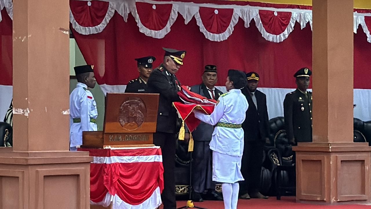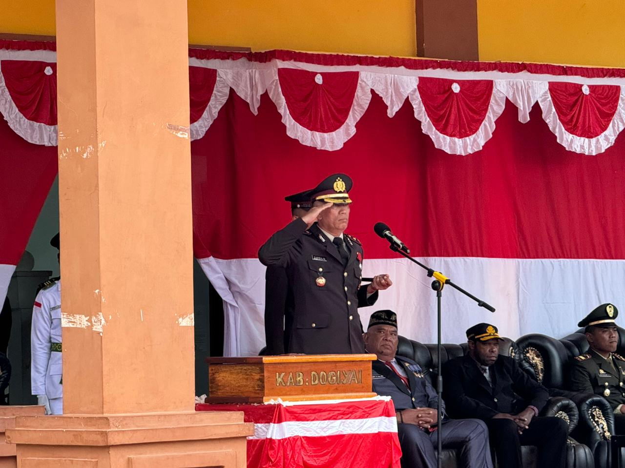 Kapolres Dogiyai Pimpin Upacara Penurunan Bendera HUT RI ke-79 di Kabupaten Dogiyai