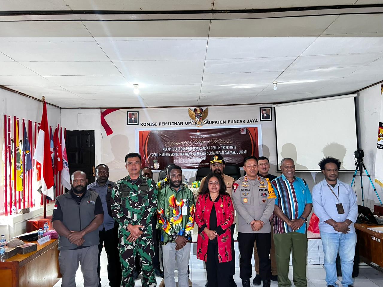 Puncak Jaya, 22 September 2024 – Bertempat di Ruang Rapat Kantor KPUD Kab. Puncak Jaya, Kepala Kepolisian Resor Puncak Jaya AKBP Kuswara, S.H., S.I.K., M.H menghadiri rapat pleno terbuka rekapitulasi dan penetapan Daftar Pemilih Tetap (DPT) Pemilihan Gubernur dan Wakil Gubernur serta Bupati dan Wakil Bupati Tahun 2024, Sabtu (21/09).