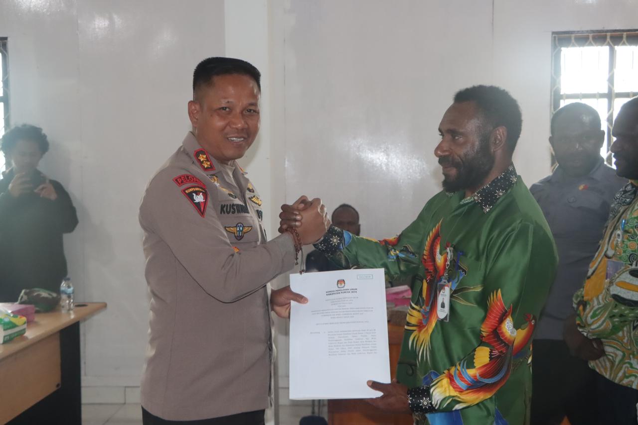 ” Kami juga berpesan kepada seluruh masyarakat terkhusus kepada para pendukung dari masing-masing Paslon agar tetap ciptakan situasi yang aman dan damai di Kab. Puncak Jaya ini, siapapun nantinya yang akan terpilih itulah nanti yang akan menjadi perwakilan dari seluruh masyarakat untuk membangun Kab. Puncak Jaya 5 tahun kedepan ” pungkas AKBP Kuswara.