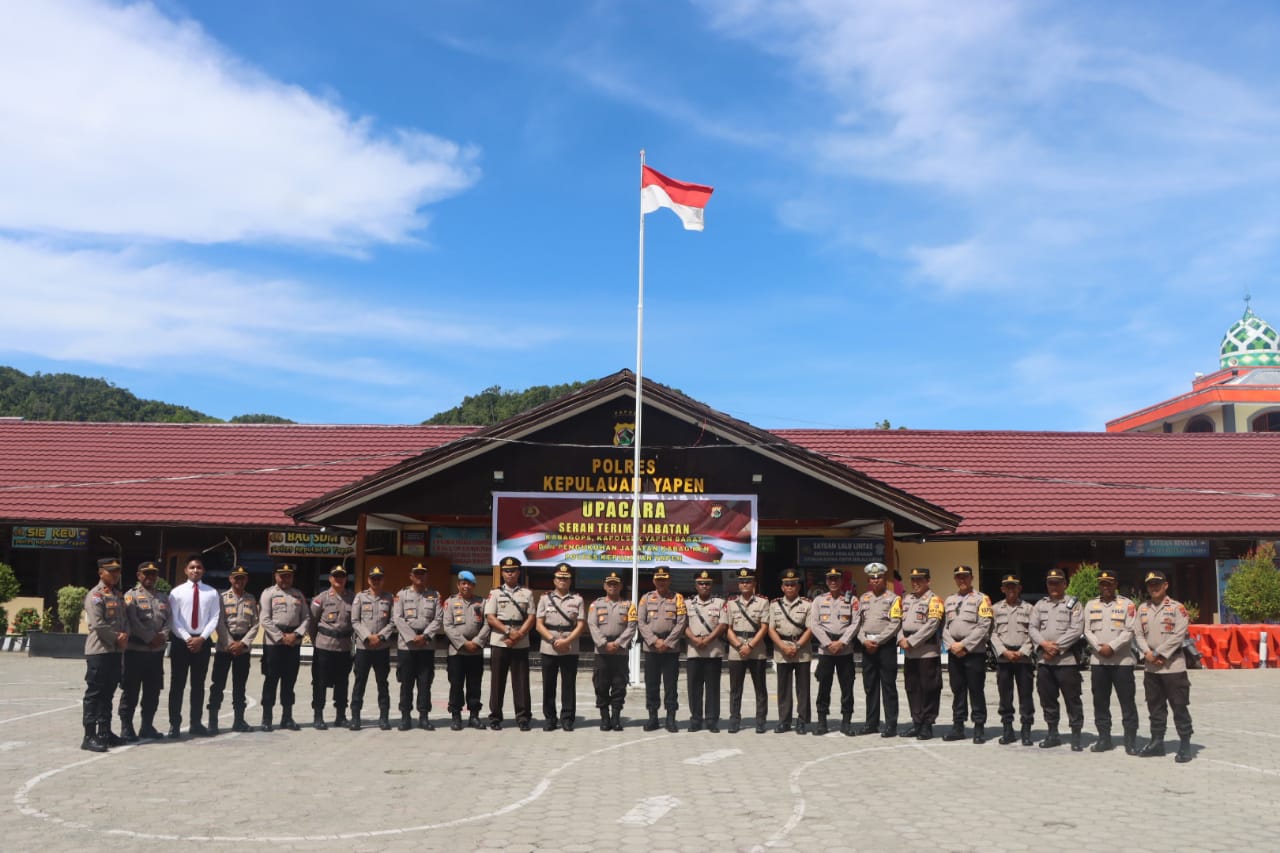 Kepulauan Yapen, Kapolres Kepulauan Yapen, AKBP Herzoni Saragih, S.IK., M.H., memimpin serah terima jabatan Kabag Ops Polres Kepulauan Yapen, Kapolsek Yapen Barat dan pengukuhan Kabag Ren.