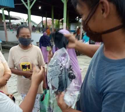 Pembagian masker gratis tersebut dilakukan di Pasar Pagi Wadio, diperuntukkan bagi para pedagang di Pasar Wadio.