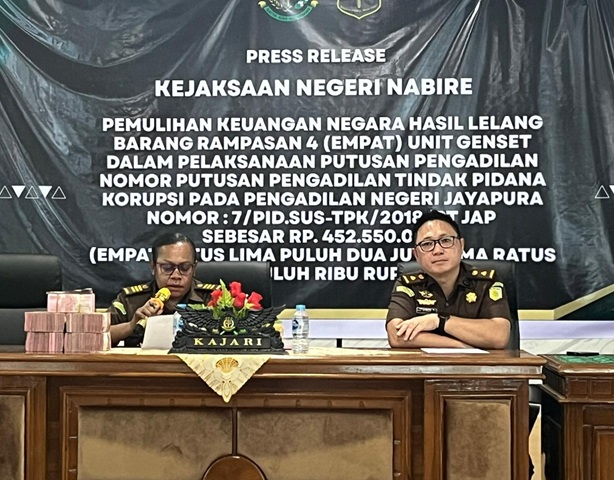 Kejaksaan Negeri Nabire mengumumkan bahwa lelang barang rampasan berhasil mendapatkan dana sebesar Rp452.550.000. Dana tersebut akan langsung disetorkan ke kas negara sebagai Penerimaan Negara Bukan Pajak (PNBP) untuk mendukung pemulihan kerugian keuangan negara.