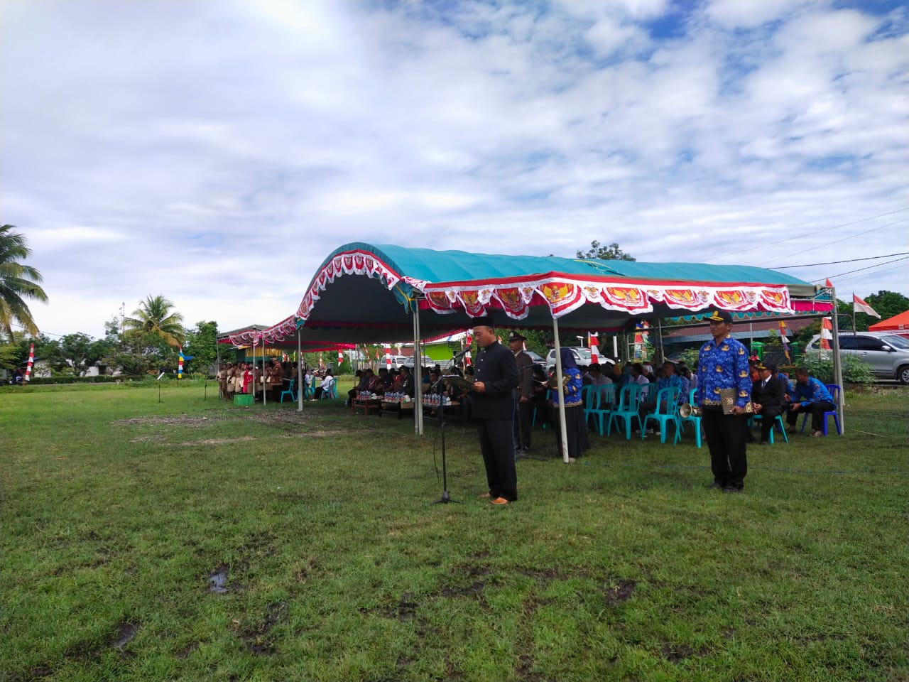 Hadir dalam upacara ini, Kepala Distrik Nabire Barat, Maikel Tebai, S.IP, Sekretaris Distrik Nabire Barat, I Gede Putra Wijaya, Kepala Kampung Wadio, Ibu Warti, Kapolsek Nabire Barat, para aparat tingkat Distrik, para aparat Kampung, TNI-Polri.