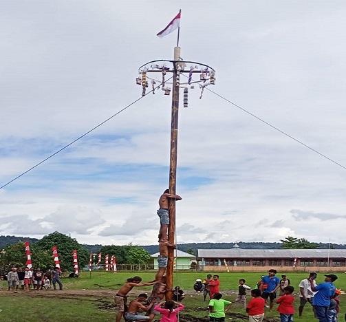 Usai upacara, acara dilanjutkan dengan perlombaan panjat pinang dirangkau dengan hiburan elekton.