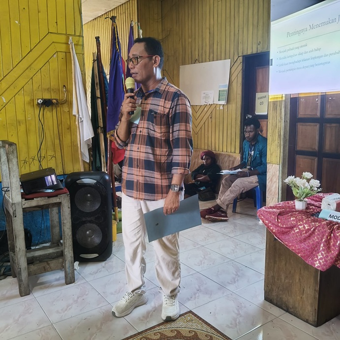 Acara yang berlangsung di Asrama Puncak, Jalan Jakarta Nabire, ini menghadirkan Nicodemus Rahanra sebagai narasumber dengan materi berjudul “Membangun Kepercayaan Diri.”