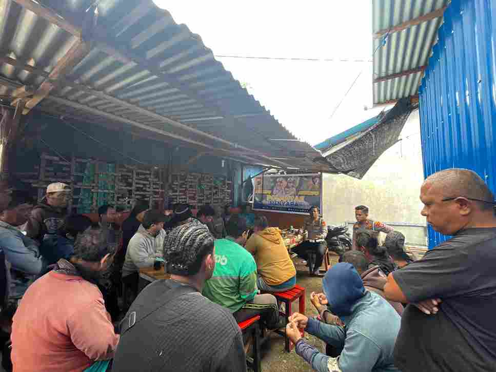 Kegiatan dialog berlangsung santai di Warung Madura, Jalan Jenderal Sudirman, Nabire, Jumat (30/01). Turut hadir Kasat Lantas Polres Nabire bersama para tukang ojek Madura Nabire.