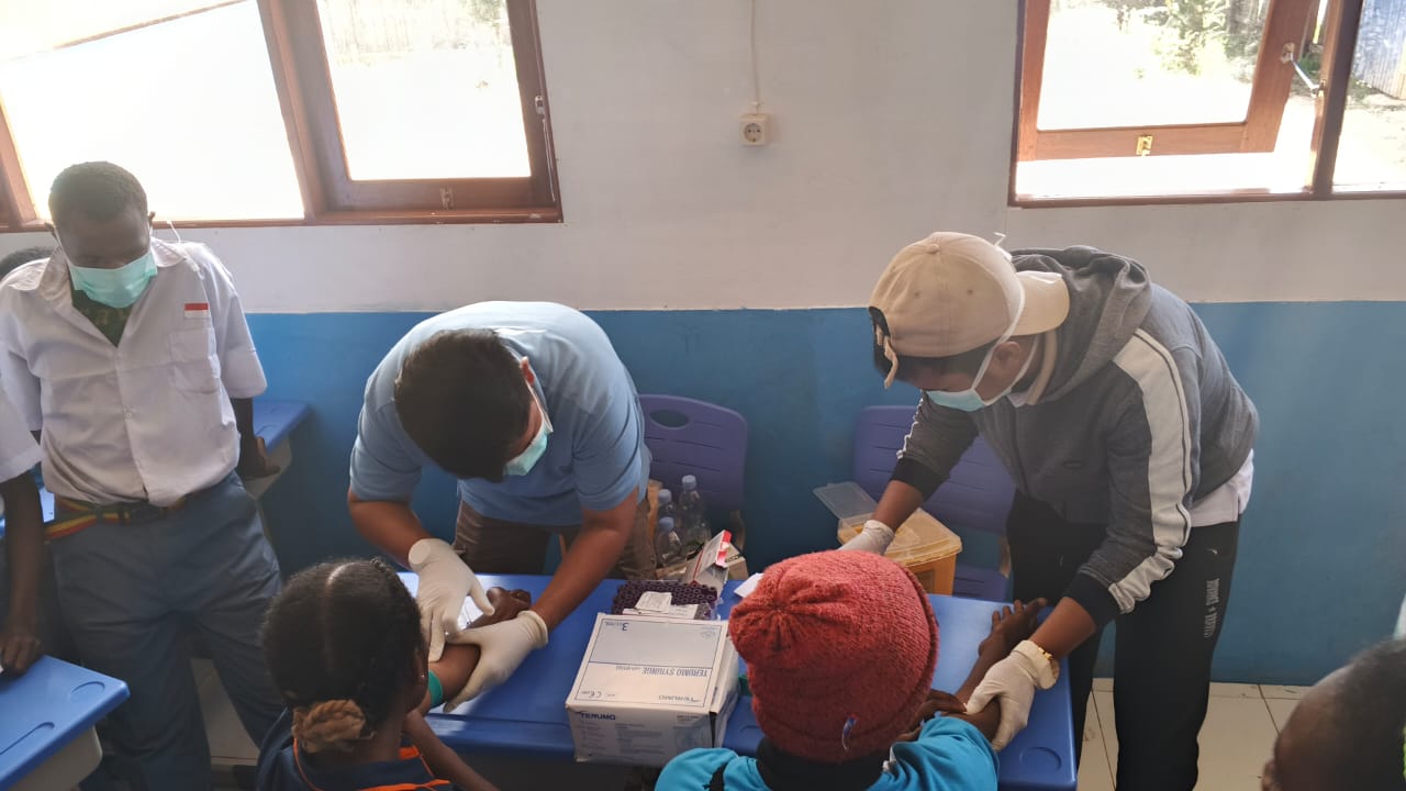 Kegiatan ini juga menghadirkan tenaga medis profesional, termasuk Kepala Laboratorium Pemeriksaan RSUD Paniai, Kosmas Kudubun, S.Tr.Kes, yang bertindak sebagai pemateri sekaligus pemeriksa HIV/AIDS.