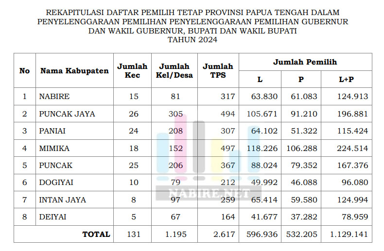 (Baca Juga : KPU Nabire Tetapkan DPT Pilkada 2024 Sebanyak 124.913 Pemilih, Ini Rinciannya!)