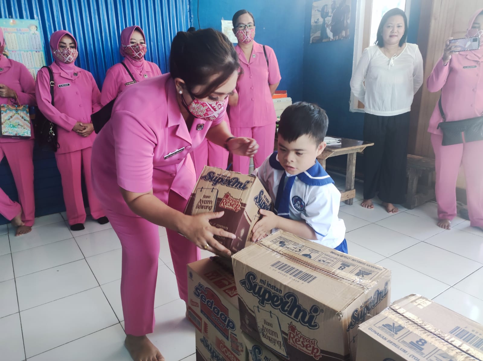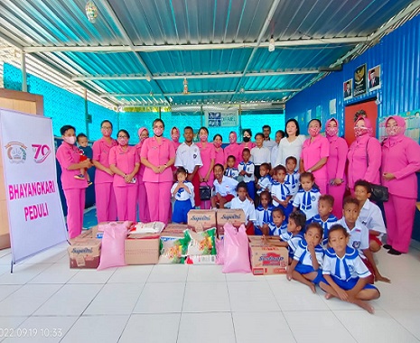 Bantuan diserahkan oleh Ipda Hendriyantoro dan Ibu Ketua Cabang Bhayangkari Nabire, Ny.Putri Ketut.