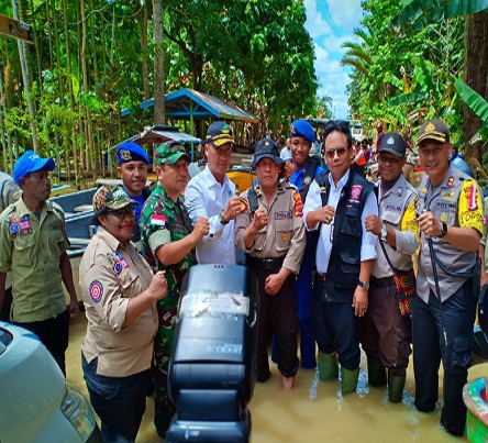 Usai mendatangi Posko Induk, Mensos langsung melakukan peninjauan ke lokasi luapan Danau Sentani dan mengunjungi Posko Pengungsian.