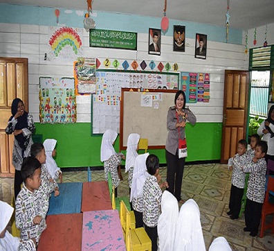 Satgas Binmas Noken Polres Nabire dipimpin oleh Bripka Irma Sutari S.Sos, didampingi Kepala Sekolah TK Bustanul Atfal yang diwakili guru, Ibu Endang Setyowati, S.Pd, bersama anak-anak TK sebanyak 28 orang.