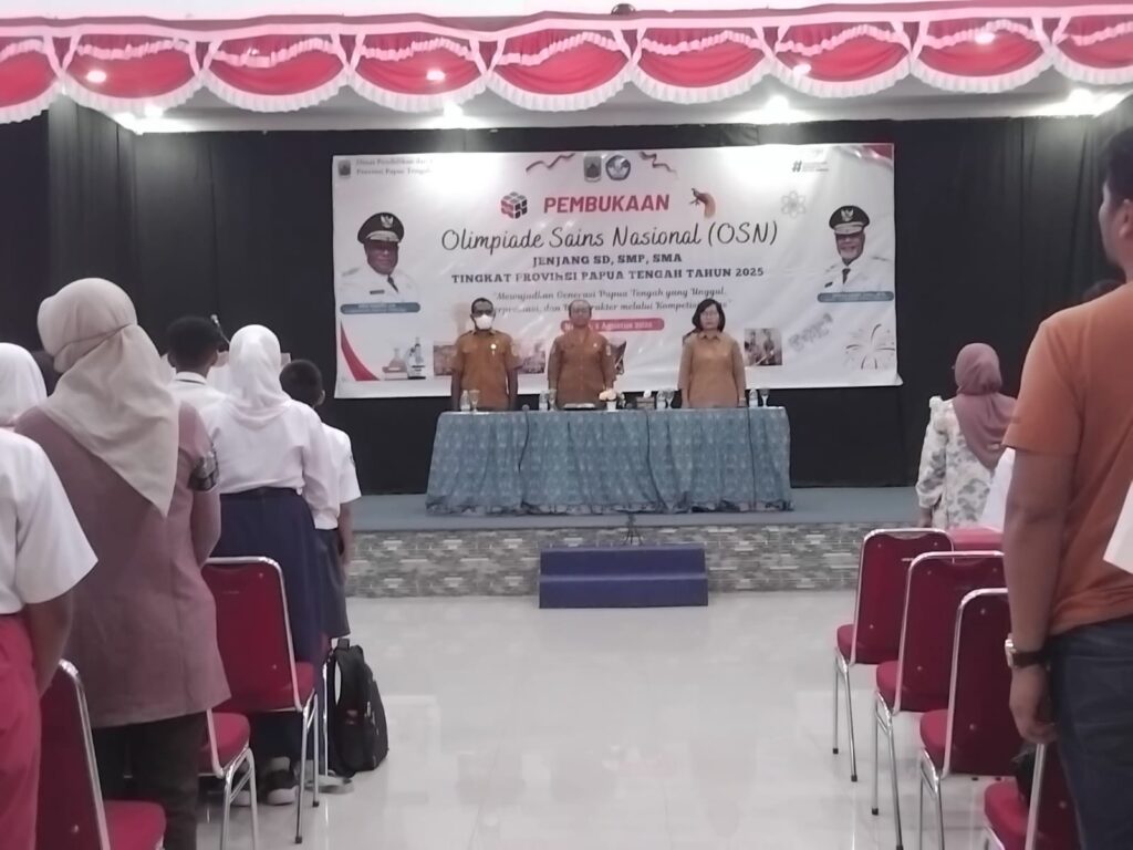 Nabire, 6 Agustus 2025 – Pemerintah Provinsi Papua Tengah melalui Dinas Pendidikan resmi membuka pelaksanaan Olimpiade Sains Nasional (OSN) jenjang SD, SMP, dan SMA tingkat provinsi tahun 2025, bertempat di LPP RRI Nabire, Selasa (5/8/2025). Pembukaan kegiatan ini dipimpin langsung oleh Kepala Dinas Pendidikan Provinsi Papua Tengah, Nurhaidah Nawipa, SE.