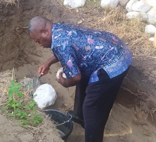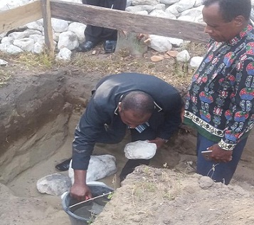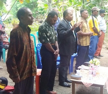 Setelah itu dilakukan peletakan batu pertama diawali oleh Ketua BPW GBI Nabire.