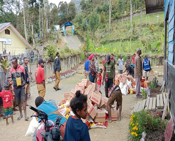 Warga setempat hampir satu minggu tidak berkebun; susah memperoleh bahan makanan dari hasil kebun mereka. Oleh karena itu, bantuan sembako yang disalurkan oleh Pemda Intan Jaya melalui Dinas Sosial diharapkan dapat membantu meringankan beban warga yang terdampak.