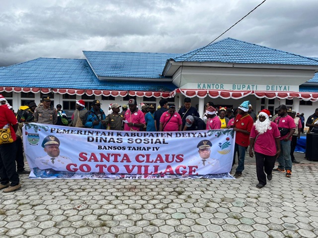 Deiyai, 12 Desember 2025 – Dalam suasana Natal yang penuh sukacita, Pemerintah Kabupaten Deiyai melalui Dinas Sosial melaksanakan kegiatan sosial bertajuk “Santa Claus Go To Village” pada Jumat (12/12/2025). Program ini dihadiri oleh sejumlah kepala OPD, pegawai serta tenaga kontrak Dinas Sosial, para kepala desa, dan masyarakat.