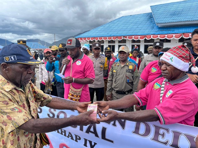 Pada kesempatan itu, Dinas Sosial menyalurkan bantuan uang tunai dan sembako yang diperuntukkan bagi masyarakat kurang mampu, termasuk yatim piatu serta janda-duda. Bantuan tersebut diterima langsung oleh 67 kepala desa se-Kabupaten Deiyai untuk kemudian disalurkan kepada warga yang membutuhkan melalui gereja atau mekanisme lain sesuai kebutuhan desa.