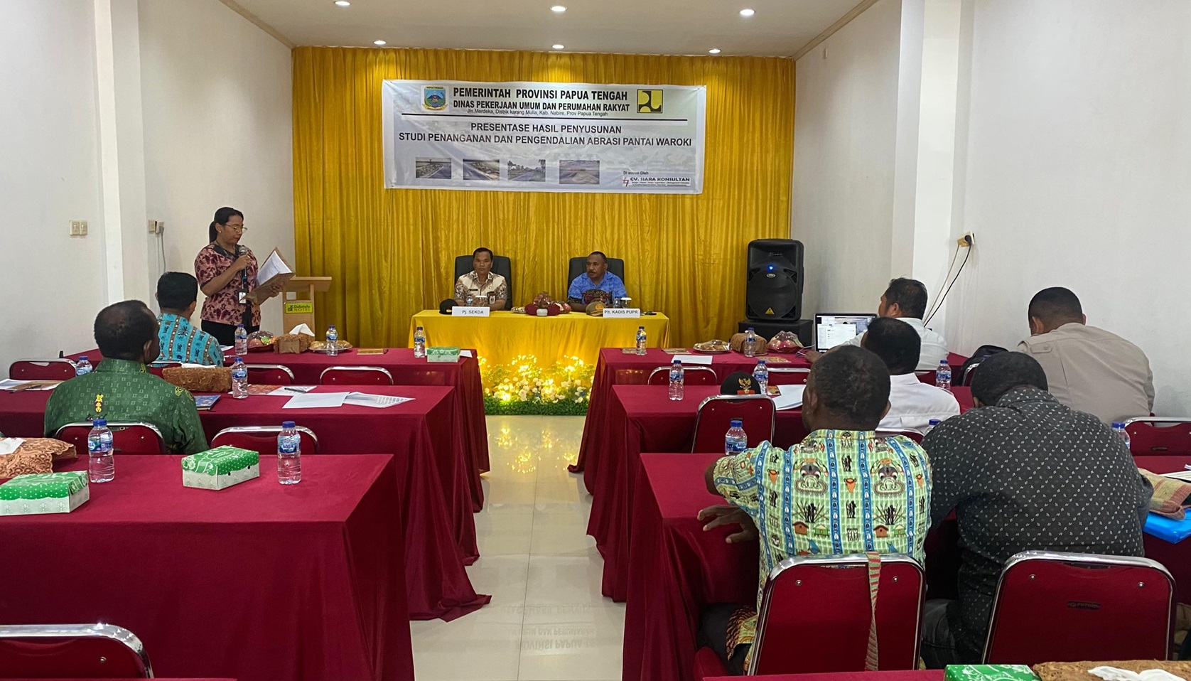 Nabire, 3 Oktober 2024 – Pemerintah Provinsi Papua Tengah melalui Dinas Pekerjaan Umum dan Perumahan Rakyat (PUPR) menggelar acara presentasi hasil penyusunan studi penanganan dan pengendalian abrasi Pantai Waroki, Nabire.