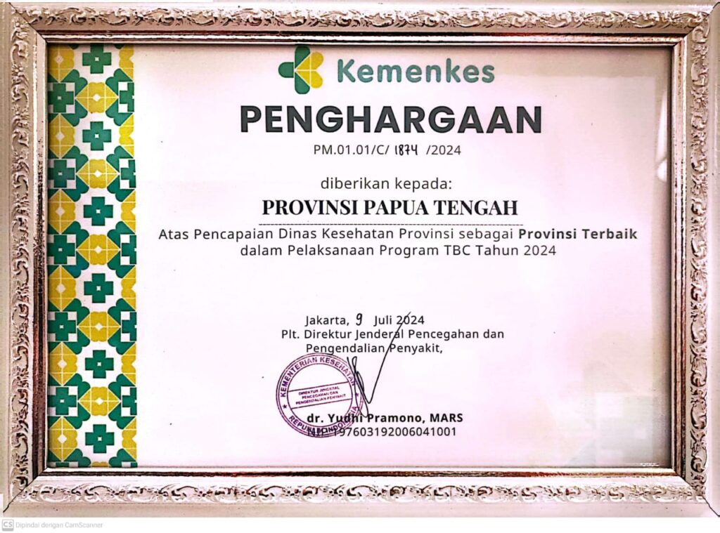 Pemprov Papua Tengah Raih Penghargaan Terbaik Program TBC 2024 dari Kemenkes RI