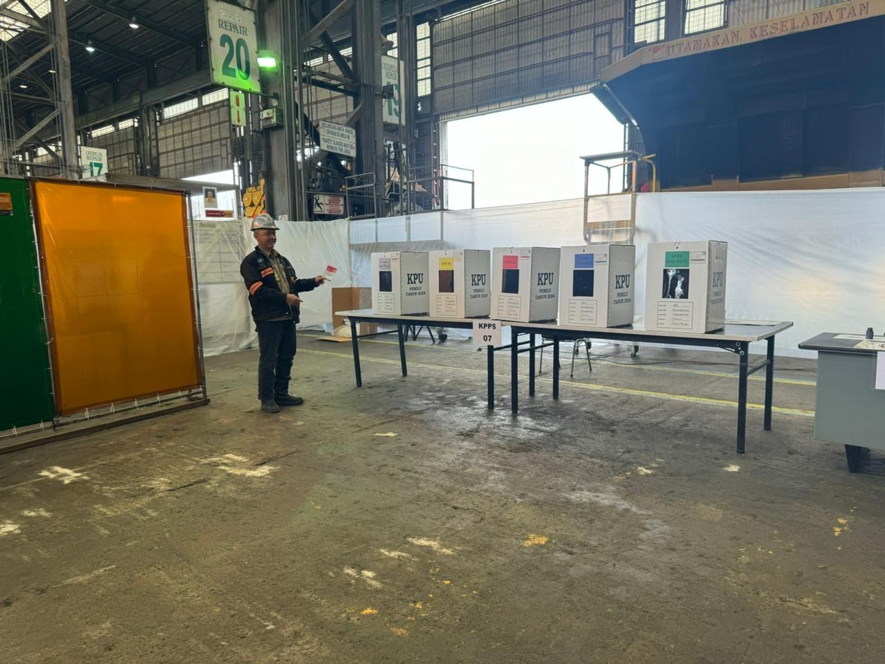 Perusahaan memberikan kesempatan kepada karyawan yang bekerja pada hari pemungutan suara Pemilu 2024 menggunakan hak pilihnya untuk memberikan suara di TPS yang tersebar di seluruh area kerja Jobsite PTFI.