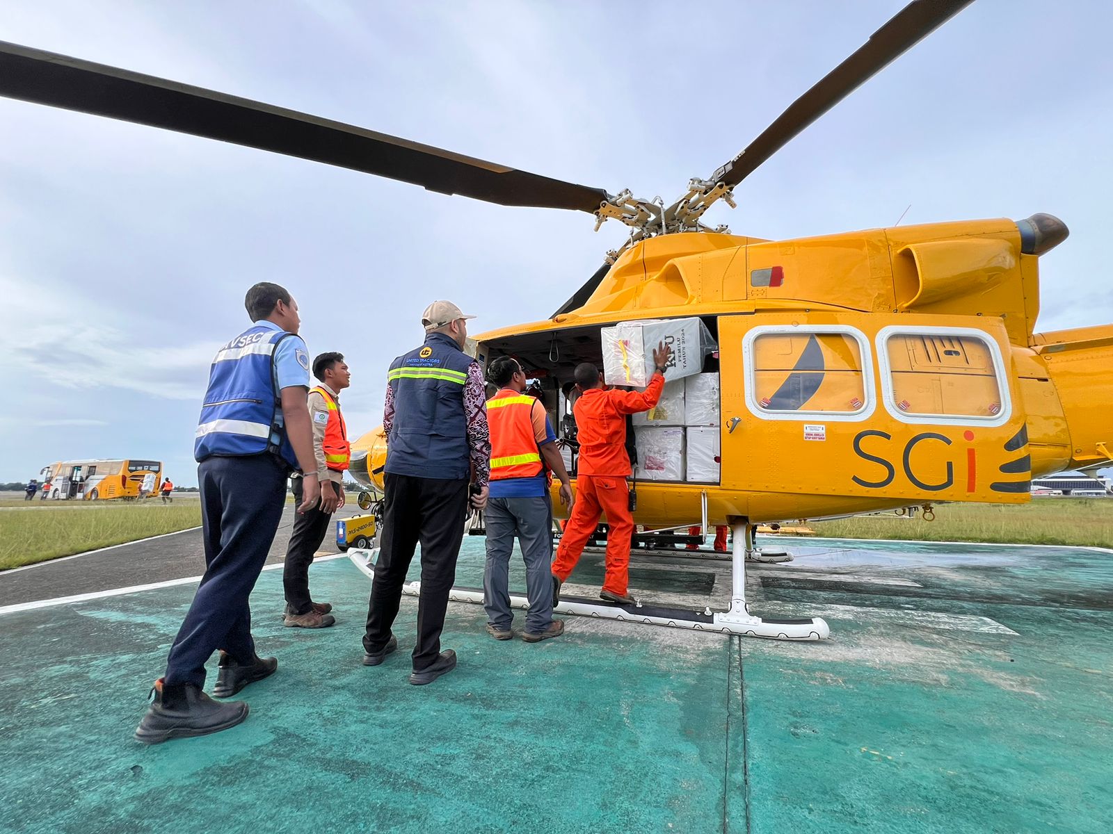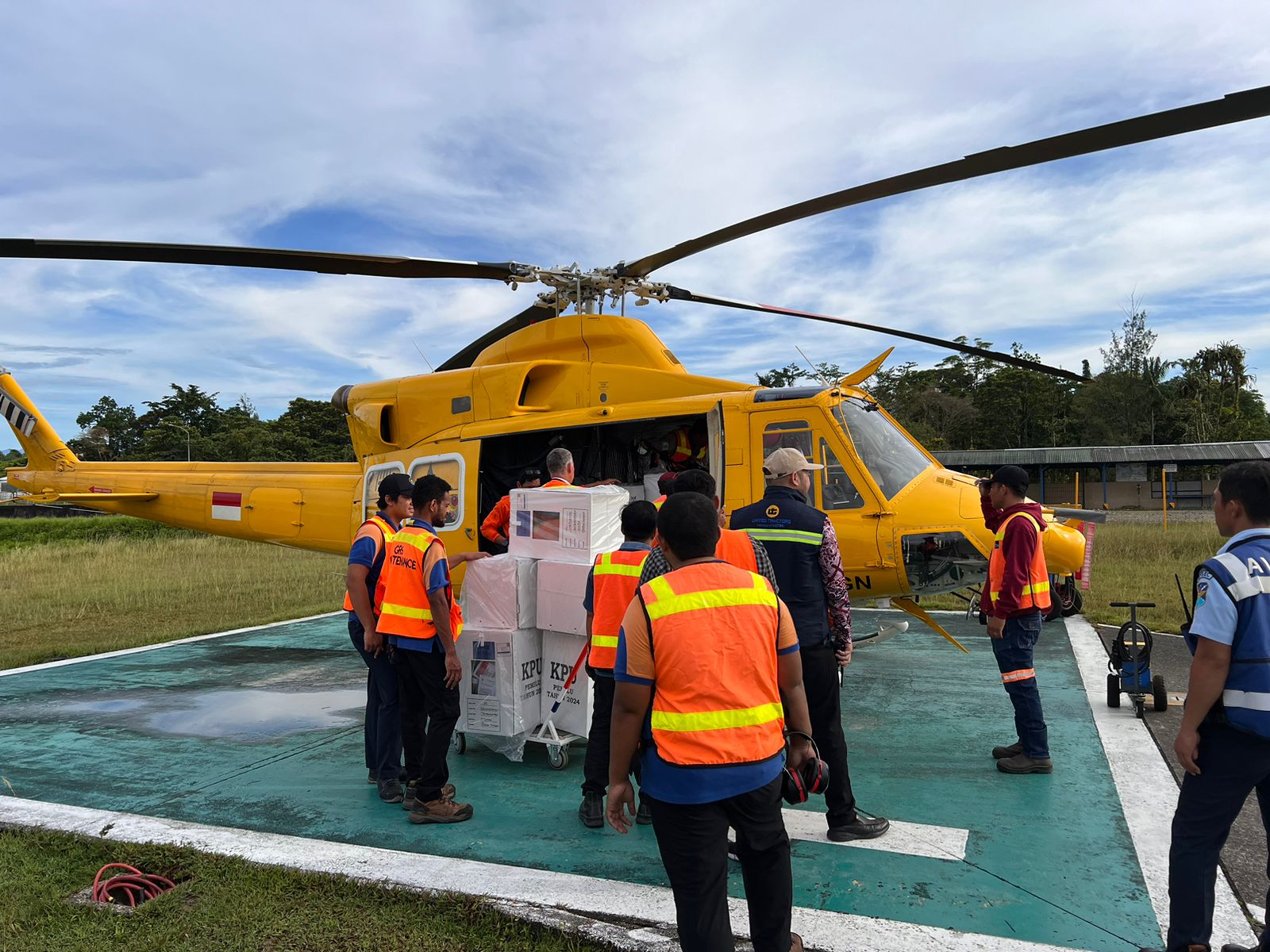 Mendukung Pengiriman Kotak Suara ke Kampung Tsinga dan Arwanop Menggunakan Helikopter