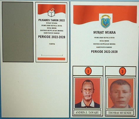 Di Kampung Moor, Distrik Moora, sebanyak 2 calon Kepala Kampung memperebutkan suara dari warga kampung Moor pada Pilkakam Serentak.