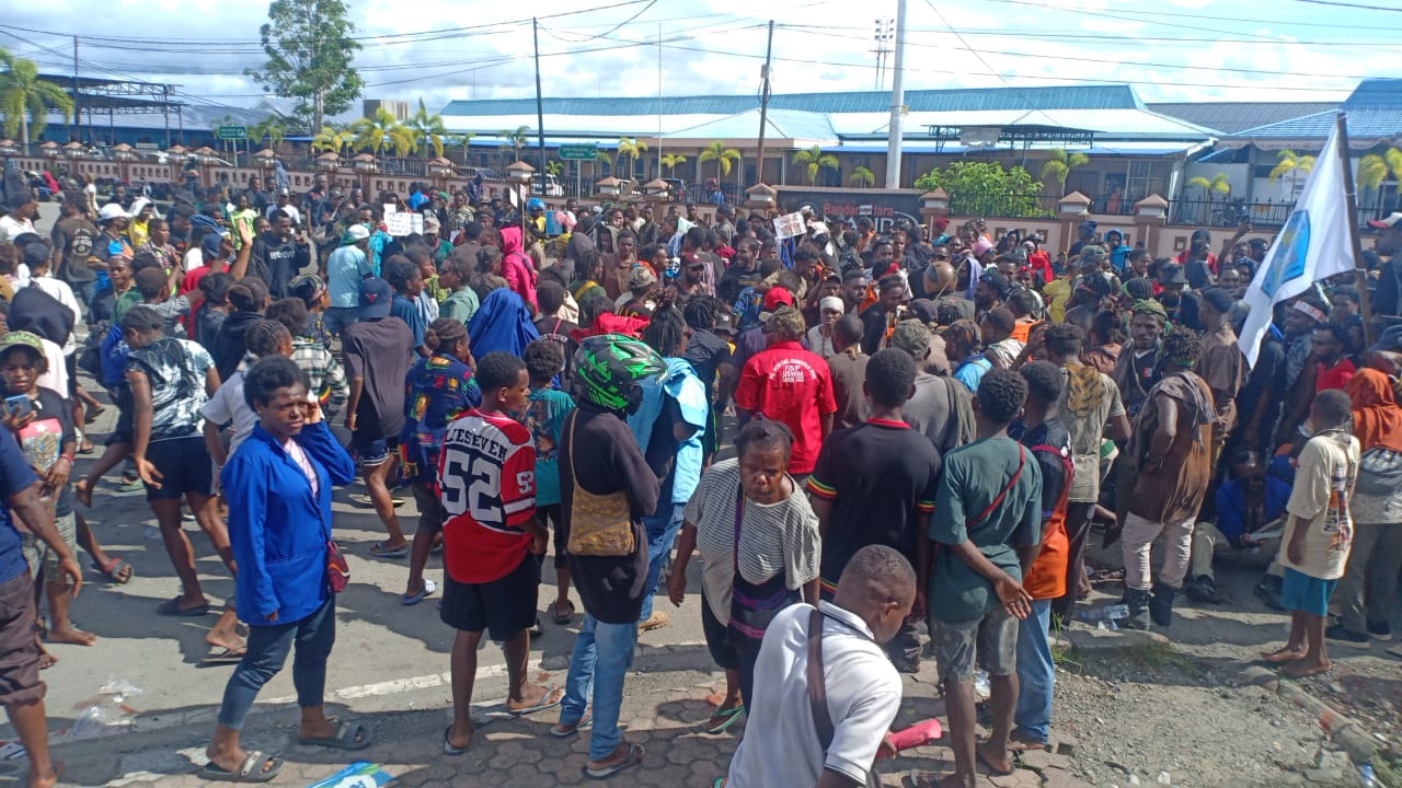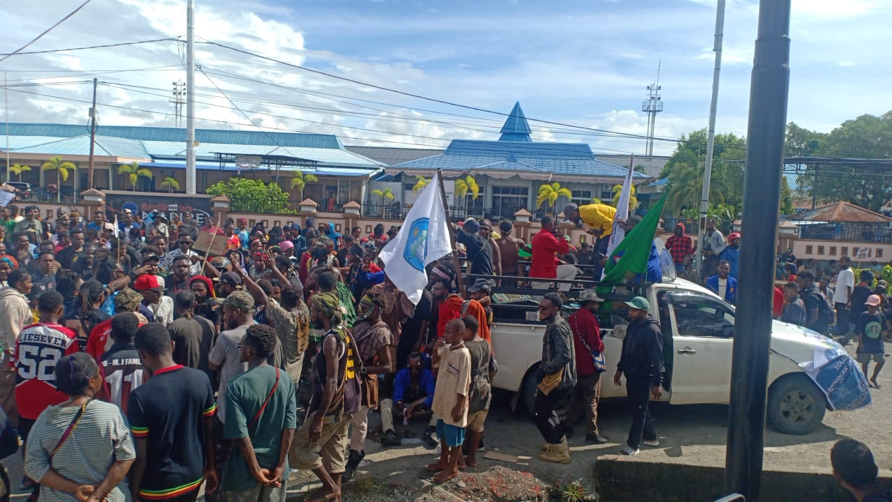 Diketahui, massa hendak menyampaikan aspirasi di DPR Papua Tengah. Namun saat ini mereka masih menunggu kehadiran Gubernur Papua Tengah.