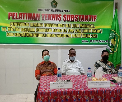 Nabire – Sejak dilaksanakan 13 Oktober 2020 lalu, kegiatan Pelatihan Teknis Substansif Penyusunan Rencana Pembelajaran bagi guru Madrasah dan guru pendidikan agama SD, SMP dan SMA, serta Pelatihan Teknis Substantif Pembinaan Kemasjidan Angkatan II di lingkup Kementerian Agama Nabire, resmi ditutup hari ini, senin (19/10).