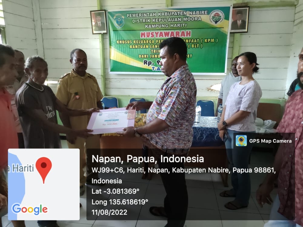 Penyerahan BLT Triwulan I 2022 untuk Kampung Arui & Hariti, Distrik Kepulauan Moora, Nabire