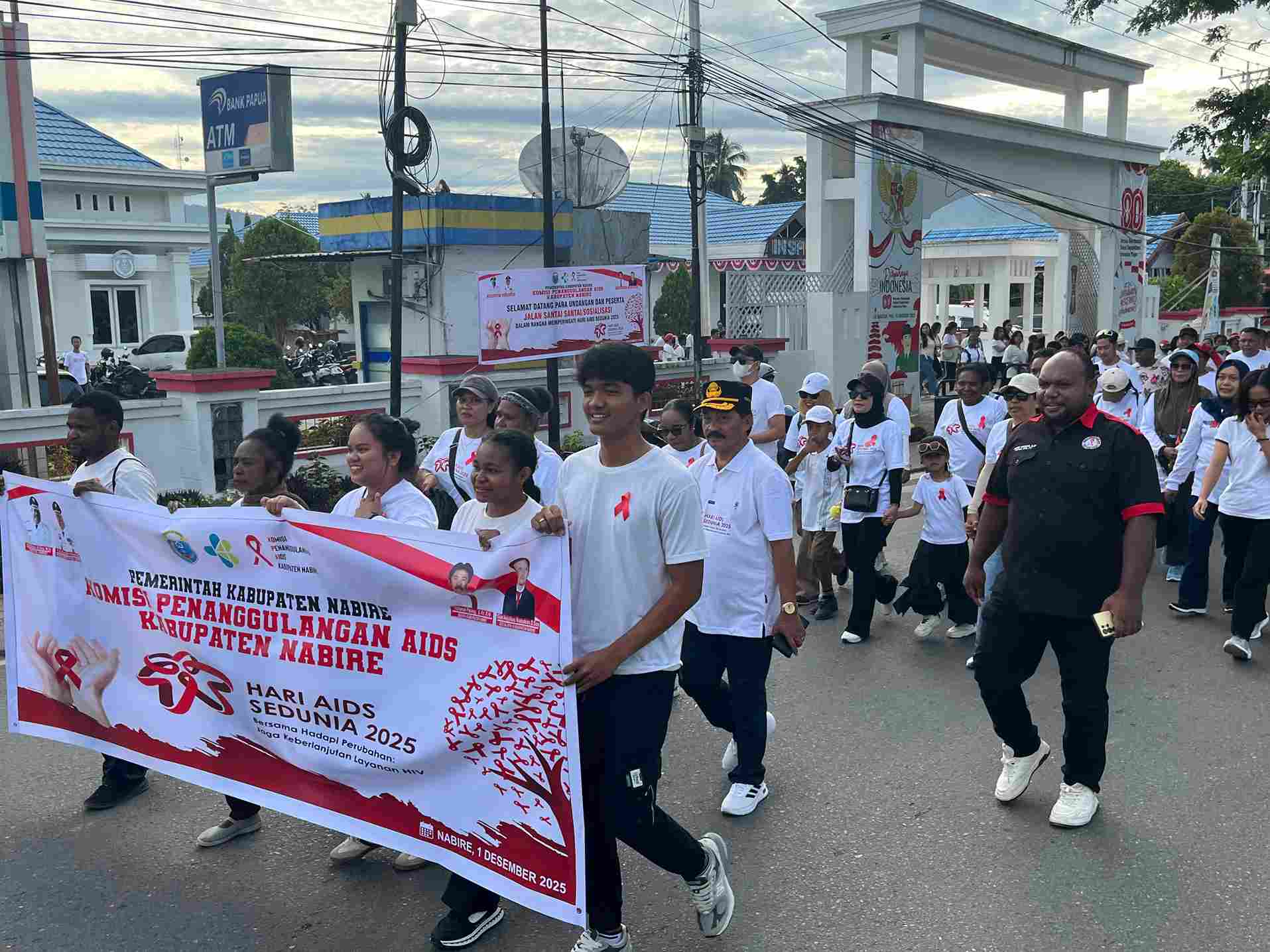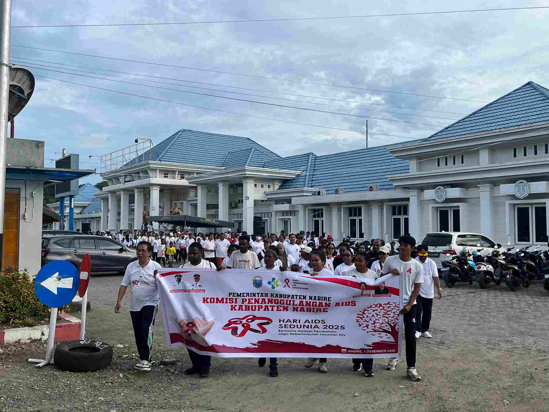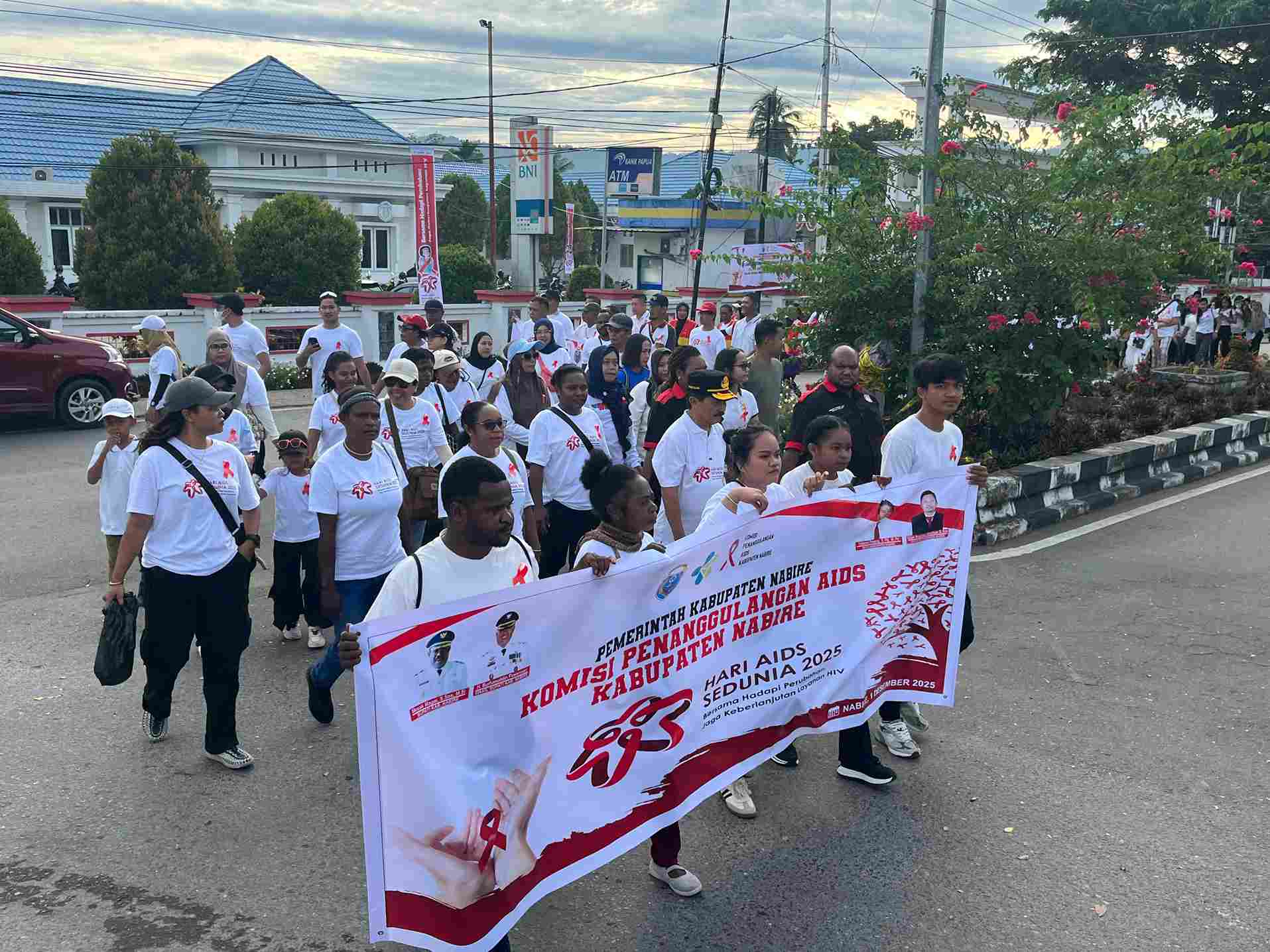 Peringatan Hari AIDS Sedunia diawali dengan jalan santai yang ditandai dengan pelepasan balon ke udara secara simbolis oleh Plt Sekda Nabire, Ketua KPA Kabupaten, Ketua KPA Provinsi, tokoh agama, serta unsur Forkopimda.