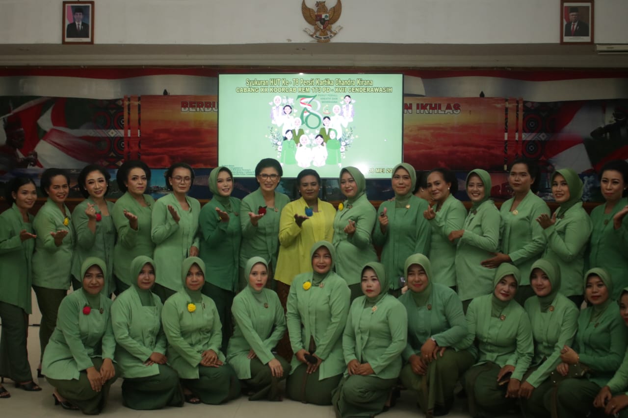 Nabire – Acara Syukuran dalam rangka memperingati HUT ke-78 Persit Kartika Chandra Kirana dilaksanakan di Aula Kodim 1705/Nabire, Rabu (08/05/2024).