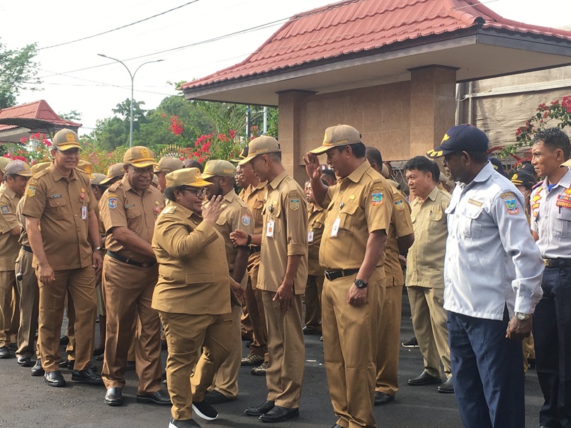 Nabire, Penjabat Gubernur Papua Tengah, Dr. Ribka Haluk, S.Sos., MM., memimpin Apel Pagi di lingkungan Pemerintah Provinsi Papua Tengah, Senin (18/12/2023).