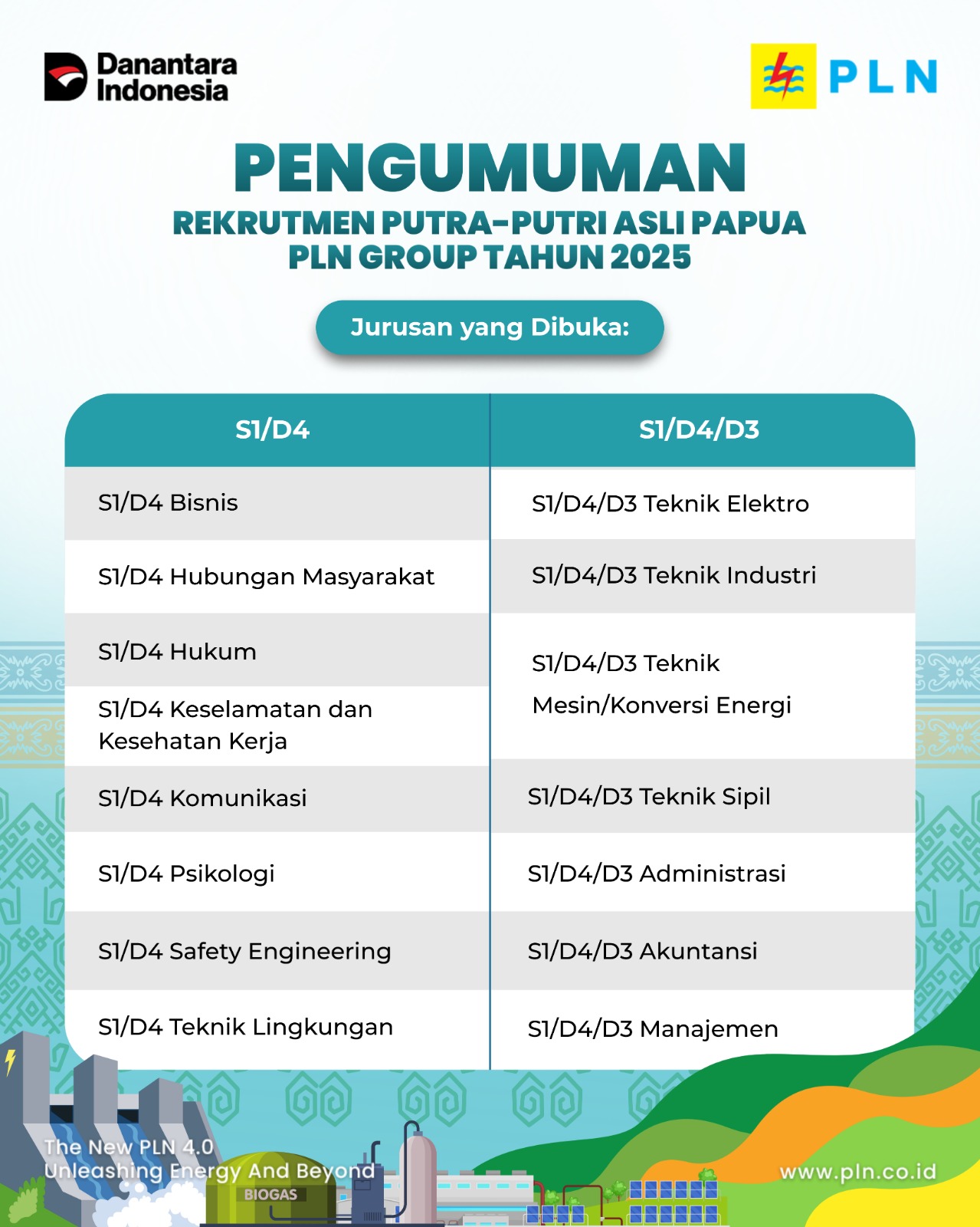 Nabire, 8 September 2025 – Kabar gembira bagi putra-putri asli Papua di Kabupaten Nabire. PLN Group resmi membuka rekrutmen tahun 2025 khusus untuk talenta terbaik Papua yang ingin berkarier di perusahaan listrik milik negara tersebut.