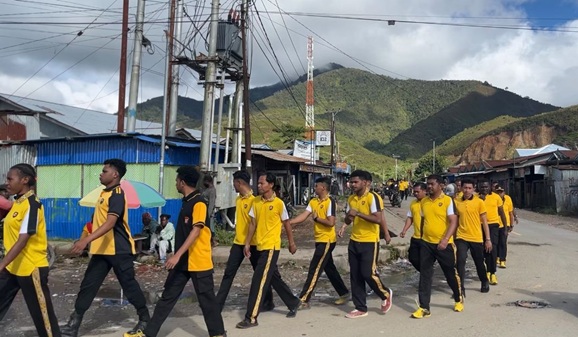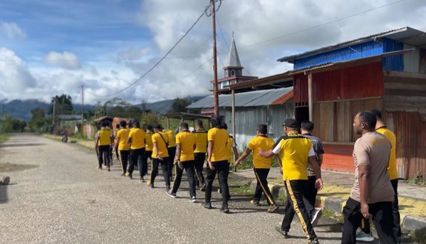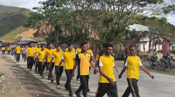 Kegiatan olahraga rutin ini diawali dengan apel pagi dan doa bersama, kemudian dilanjutkan dengan jalan santai mengelilingi wilayah Pasar Moanemani, Kabupaten Dogiyai.